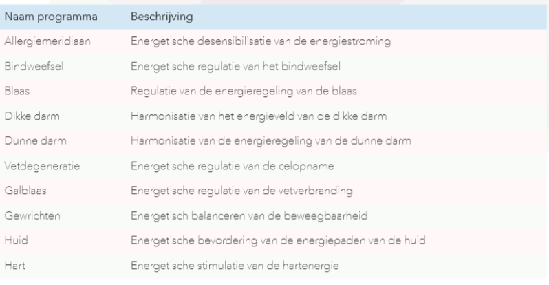 De Healy app heeft 2 meridianen programma's. Deze zijn onderdeel van de Holistische Health versie